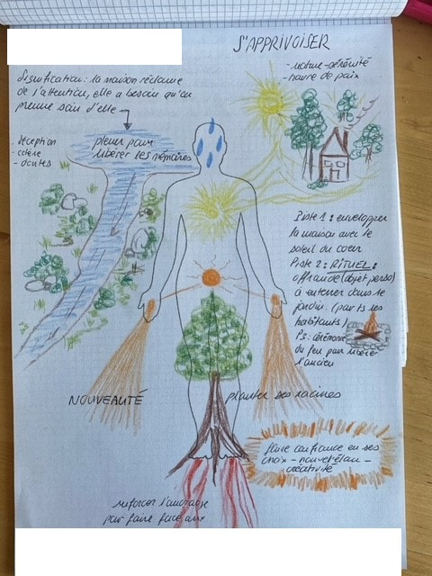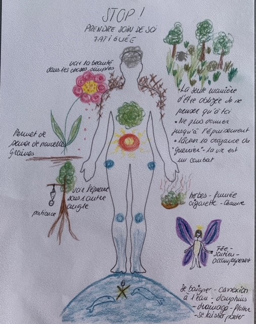 De plus, les couleurs employées dans le dessin ont un pouvoir de guérison et d’intégration pour toi; tu pourras accrocher le dessin au mur quelques temps afin que le processus soit facilité.