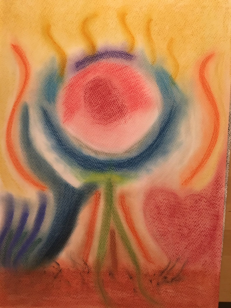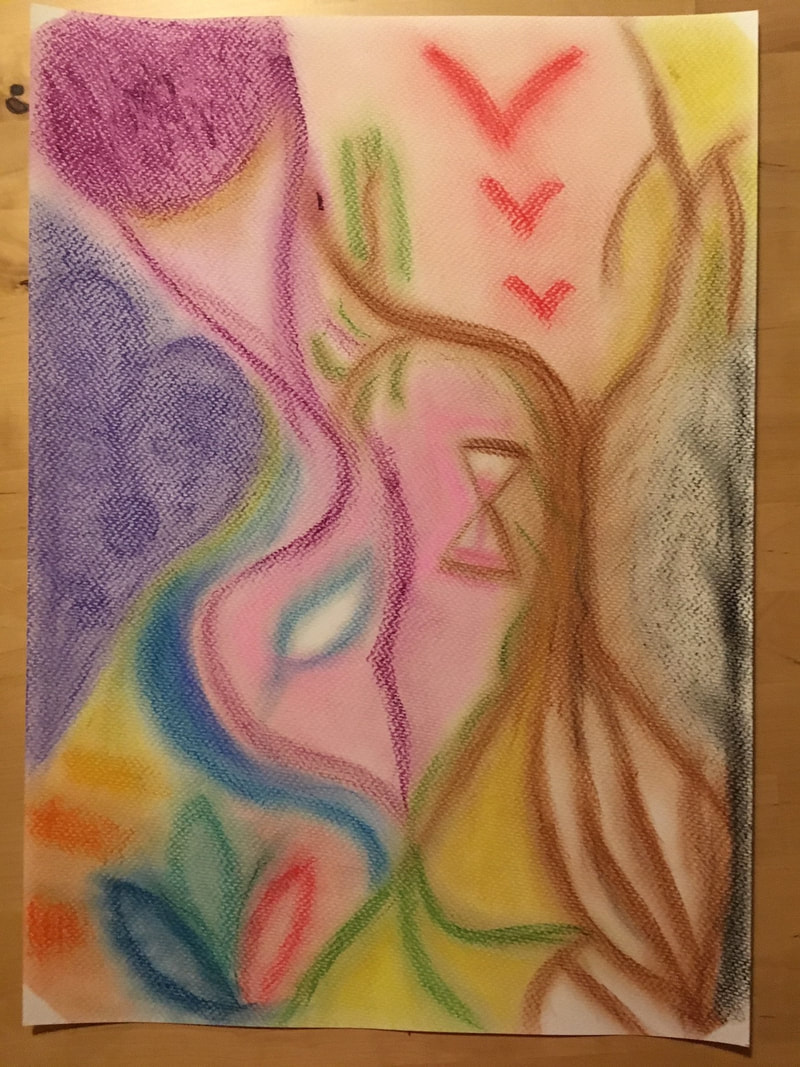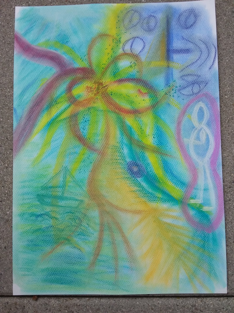 Je me mets dans un état modifié de conscience, la transe, et je peins ce que ton âme me dit. J’utilise différents médiums comme l’aquarelle, les pastels secs, l’acrylique et parfois je mixe les techniques.